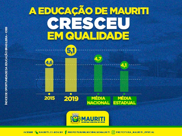 Mauriti apareceu no ranking de cidades brasileiras que possuem a "Melhor Educação do País", realizada pelo Índice de Oportunidades da Educação Brasileira (IOEB), uma espécie de Índice de Desenvolvimento Humano (IDH). O município recebeu nota de 5.1, a maior que a cidade já obteve no ranking desde a criação da pesquisa, ficando acima da média estadual que foi 4.1 e a nacional que foi 4.7.