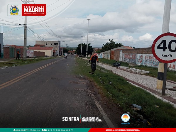 A Secretaria Municipal de Infraestrutura da Prefeitura de Mauriti executa nesta sexta feira, 11, o roço e manutenção das vias públicas na sede do município. Esses e outros serviços de limpeza estão sendo feitos em todos os distritos da cidade, para manter os espaços e vias mais trafegáveis.